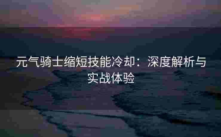 元气骑士缩短技能冷却:深度解析与实战体验摘要: 在动作类游戏《元气骑士》中,技能冷却时间一直是玩家关注的焦点之一。技能冷却决定了玩家在战斗中的输出频率和策略选择,直接影响游戏的平衡性和可玩性。而“缩短技能冷却”这一优化措施,无疑...